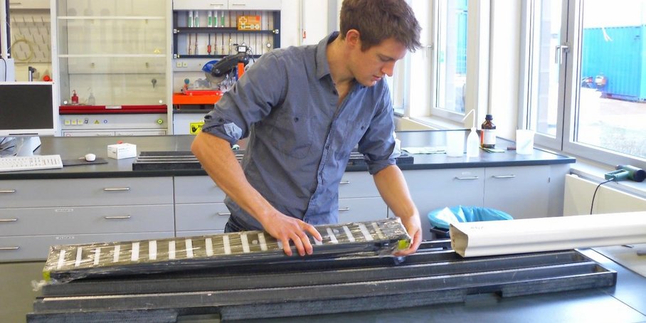 It shows James Collins sampling a sediment core (Photo: MARUM – Center for Marine Environmental Sciences, University of Bremen).