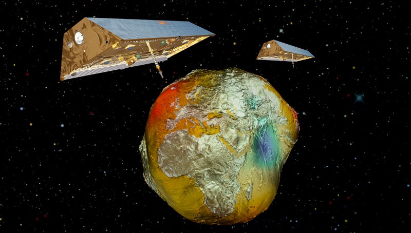 The primary scientific goal of the GRACE satellite mission is to measure the gravitational field of the earth and its changes over time on a global scale with unprecedented accuracy. If the earth were a homogeneous sphere, the two satellites would orbit at exact elliptical orbits around the Earth. But the uneven distribution of mass causes perturbations in the trajectory. "Their analysis allows us to derive the irregular structure of the Earth's gravity," explains Dr. Frank Flechtner. “This, however, requires the satellites' orbits to be measured with high precision. Each of the two GRACE satellites is therefore equipped with a GPS receiver for positioning, an accelerometer to correct for disturbing forces due to the residual atmosphere and solar radiation, and two star trackers to determine the satellites' position in space.” But the core is the ultra-precise distance measurement system developed by NASA / JPL, which allows the separartion of the two satellites to be continuously measured with a precision of one tenth of a hair's breadth.