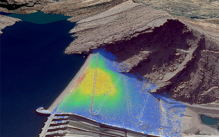 Within the feasibility study, published in Engineering Structures, the team analyses remote sensing data recorded by the German Earth observation satellite TerraSAR-X. Every eleven days the satellite crosses the Masjed-Soleyman dam and takes measurements of the Earth’s surface with a resolution of one metre. Based on these data the scientists were able to detect deformation pattern of the dam with high precision and in much more spatial detail than is currently possible with any other ground-based geodetic and geophysical instruments. The combined effect of the rock mass of the dam and the hydraulic pressure causes a subsidence of approximately thirteen centimetres on the crest and downstream movement of about seven centimetres per year. This strain stress leads to cracks threatening the long-term stability of the dam.