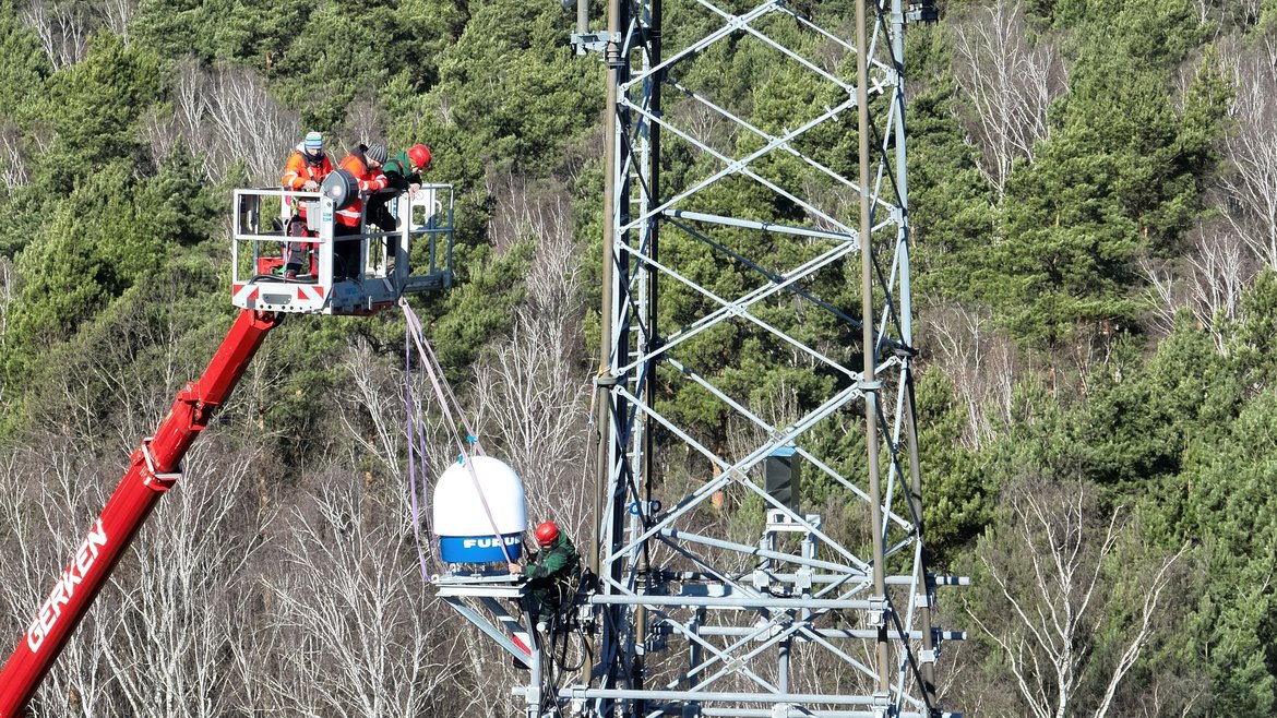 On March 5, the first of two planned weather radars for the AgroHyd-X joint project was successfully installed on an existing radio tower near Wünsdorf in Brandenburg. The system is based on a modern FURUNO X-band radar, which is specifically designed for high-resolution precipitation monitoring in agricultural regions. With the installation in Wünsdorf, a central component of the Brandenburg-wide measurement network is taking shape.