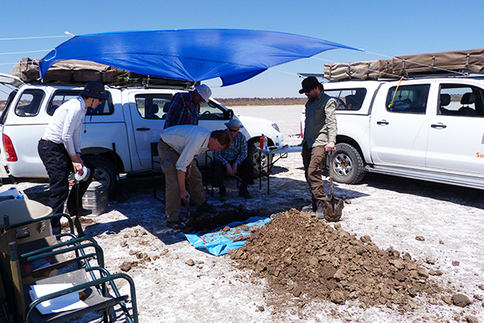 27.06.2017: Under extreme climatic conditions only few “witnesses” of past environmental conditions endure. Pollen, for example, serving as indicators for the composition of the vegetation of ancient times, are only conserved under very specific conditions. Under an extremely dry climate such as prevailing in the Kalahari in South Africa, climate archives comprising pollen or other climate “witnesses” are especially scarce. Scientists from the GFZ sections Geomicrobiology and Organic Geochemistry, together with a colleague from the Carl von Ossietzky University in Oldenburg, Germany, were searching for previously not exploited climate archives.