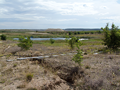 "Künstliches Wassereinzugsgebiet im Tagebau Welzow-Süd (Foto: F. Ossing, GFZ)" Bildlink: https://media.gfz.de/gfz/wv/pm/15/Huehnerwasser1.jpg