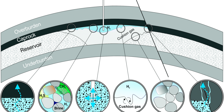 Green hydrogen, produced with renewable energies, is to become a mainstay for achieving the climate goals. This is what the German government decided in its National Hydrogen Strategy 2020. This week, the state of development of technology, products and projects was discussed at the German Hydrogen General Assembly. A Perspectives paper now published in the journal Energy & Environmental Sciences focusses on the challenges and knowledge gaps in the underground storage of hydrogen on a large scale. According to the authors, this is essential if hydrogen is to fully realise its potential for achieving net-zero emissions. The paper was written in cooperation between GEO*8, an association of leading European geoscientific research organisations, including the German Research Centre for Geosciences Potsdam, and the Scottish HyStorPor project. The authors see an urgent need for interdisciplinary research to realise the safe and efficient underground storage of hydrogen.