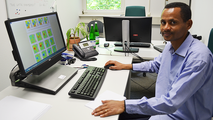 Tadesse Tujuba Kenea has one goal: he would like to be able to predict droughts in Ethiopia. The holder of the Alexander von Humboldt Foundation (AvH) scholarship is currently researching on this topic at the GFZ section Hydrology. To-date there is no system available that is capable of monitoring or even predicting droughts in this country at the African Horn. Ethiopia is a country of great contrasts. Mountains as high as four thousand meters and valleys reaching down to even below the sea level determine the landscape. Rivers – also from the snow-capped mountains – flow through the country and heavy rains lead to devastating flooding. And still the country is repeatedly hit by droughts. Such intense variations in rainfall distribution endanger agriculture which largely depends on rain for irrigation. The lack of or low precipitation causes the soil to dry out and this, in turn, leads to a reduction in agricultural yields.