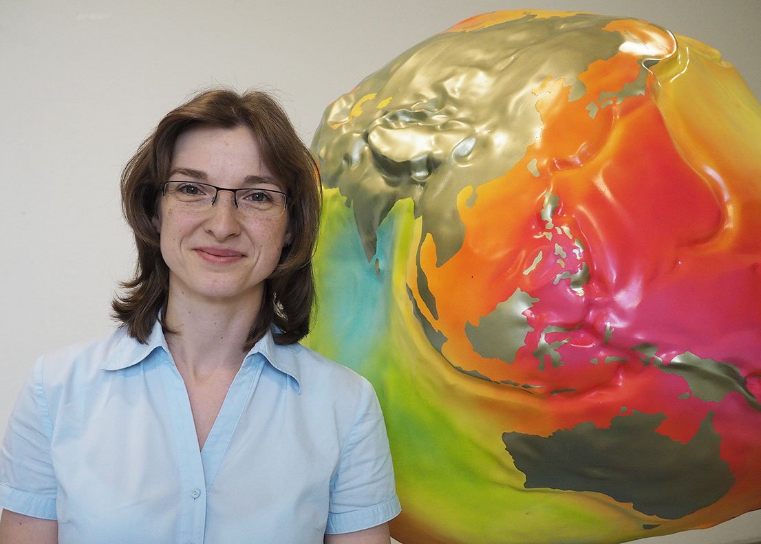 Dr. Inga Bergmann-Wolf: The Earth’s gravity field, illustrated by the “Potsdam Gravity Potato”, changes within time. These changes are mainly caused by redistribution of water masses that are detected by the GRACE satellite mission. The geodesist Inga Bergmann-Wolf deals with the oceanographic applicability of the observed data. She for example determines temporal variations in the total volume of the oceans. By analyzing the satellite data she can also recognize regional changes in water mass transport that are for example stirred by winds.