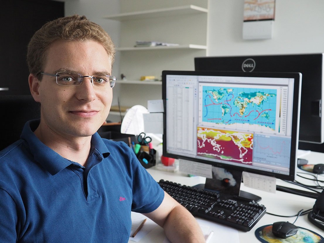 Dr. Tobias Weber: Plate tectonics that cause shifting of continents and volcanic activity lead to the opening and closing of ocean straits and the redirection of ocean currents. The mathematician Tobias Weber investigates the impact of plate tectonics on the oceans. He models dynamics of oceans and the atmosphere in Earth’s history. Thereby he was able to show that the closing of the strait between the Atlantic and Pacific Oceans in Central America about 5 million years ago strengthened the Gulf Stream and caused higher temperatures in the North Atlantic as well as in Europe.