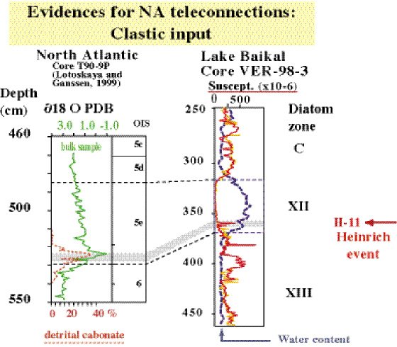 We use both biological and non-biological proxies to reconstruct climate variability on a European - Asian transect during the interglacials Holocene (10 ka years ago to present) and Eemian (c. 110 - 130 ka years ago), and the preceding Terminations I and II phases. However, in order to do this with confidence we will also investigate contemporary processes in the lake that are likely to affect each of the different climate proxies. Challenges identified include understanding: (i) biological processes in the photic zones, e.g., immediately before, during and after ice break up and during prominent seasonal changes, and life cycle strategies of organisms dependent on ice-cover in the lake; (ii) modelling under-ice phytoplankton development in Lake Baikal, (iii) processes influencing wind-blown and riverine input to the lake; (iv) quantifing total bacterial community in sediment samples for understanding degradation and mineral transformation at the sediment/water interface, (v) transport of biological and non-biological particles through the water column, e.g. rates of transport, seasonality; and (v) processes that affect final incorporation of particles from the water / sediment-surface interface, into the sedimentary record, e.g. grazing, dissolution. (vi) to evaluate and understand processes and changes in prevailing wind direction. Furthermore we intend to evaluate and understand processes and changes in prevailing wind direction. In order to address these challenges, climate will be reconstructed at high resolution: on decadal to centennial scales. Using these results we learn more about the influence of climate forcing factors and their feedbacks. With the unique lacustrine sediment sequences from Lake Baikal we exemplify a reference paleomagnetic record for boreal Central Asia.
