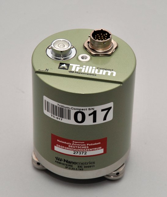 The Trillium Compact, made by Nanometrics, is a force balance broadband seismometer. Adaptor cables are available for the EarthData and CUBE recorder.