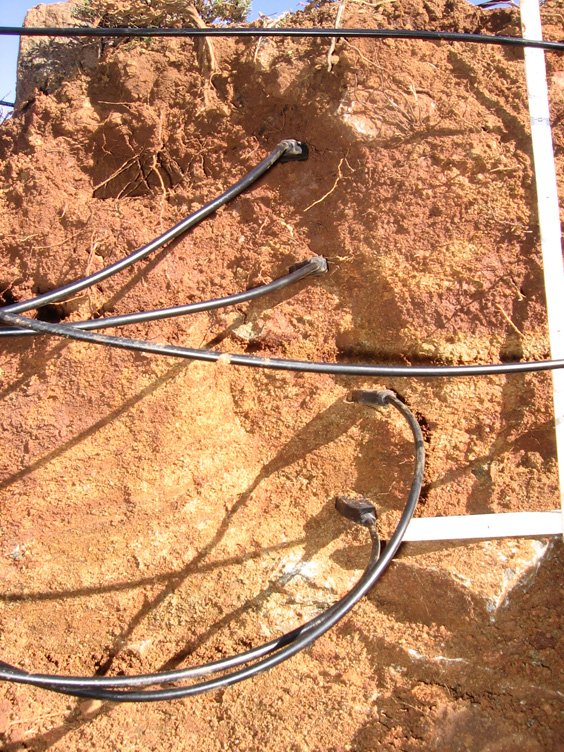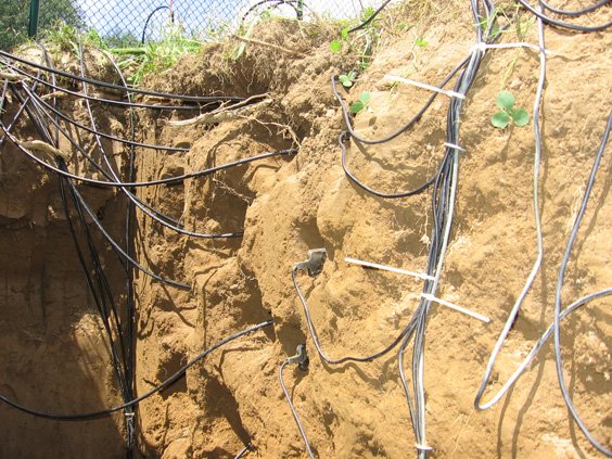 - Surficial soil moisture array consisting of 20 to 40 30 cm long 3-rod TDR probes inserted vertically from the surface.