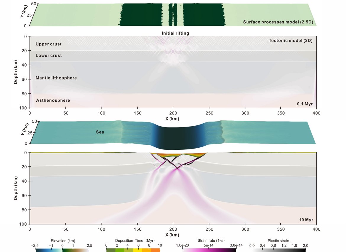 Non-uniform lithospheric extension of the Qiongdongnan Basin driven by Hainan mantle plume migration: Insights from thermo-mechanical 2D modelling.