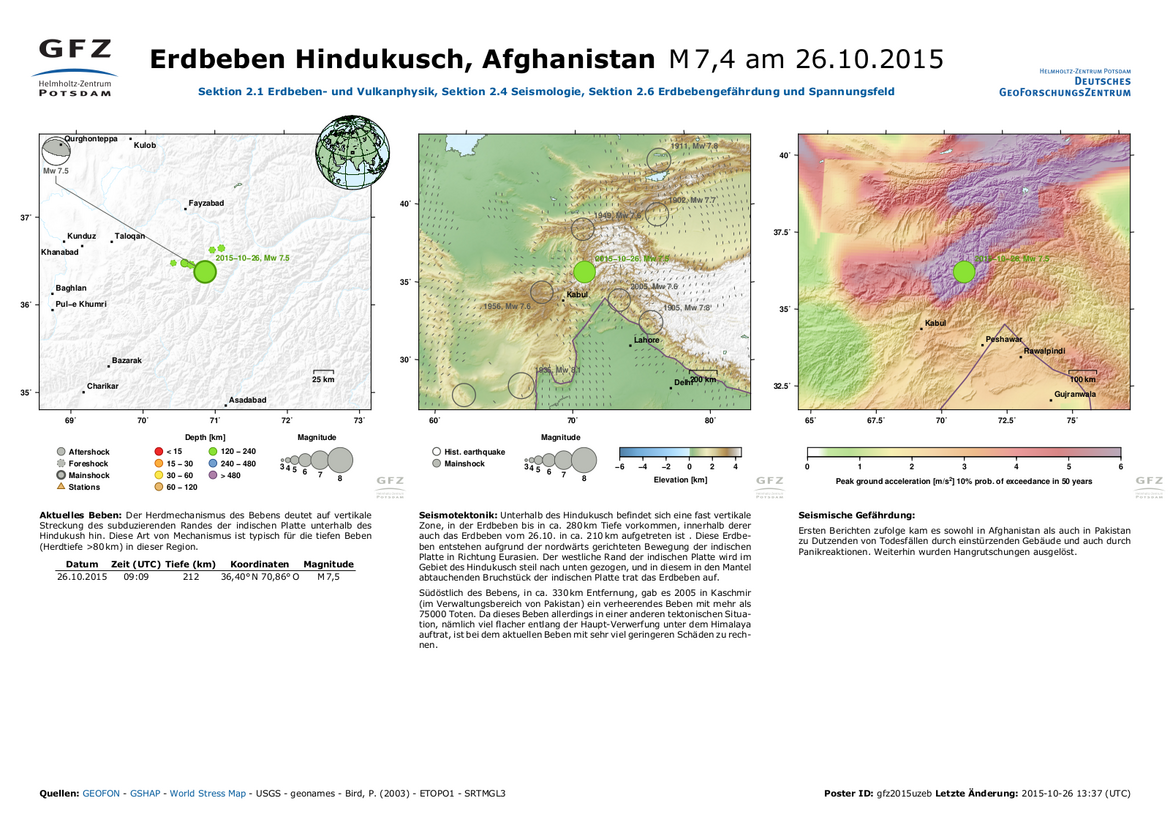 Mw 7.4 26 October 2015 Hindukusch, Afghanistan
