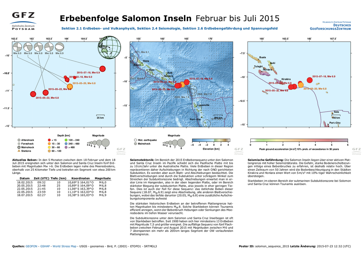 Earthquakesequence Solomon Inseln 18 February 2015 - 18 July 2015