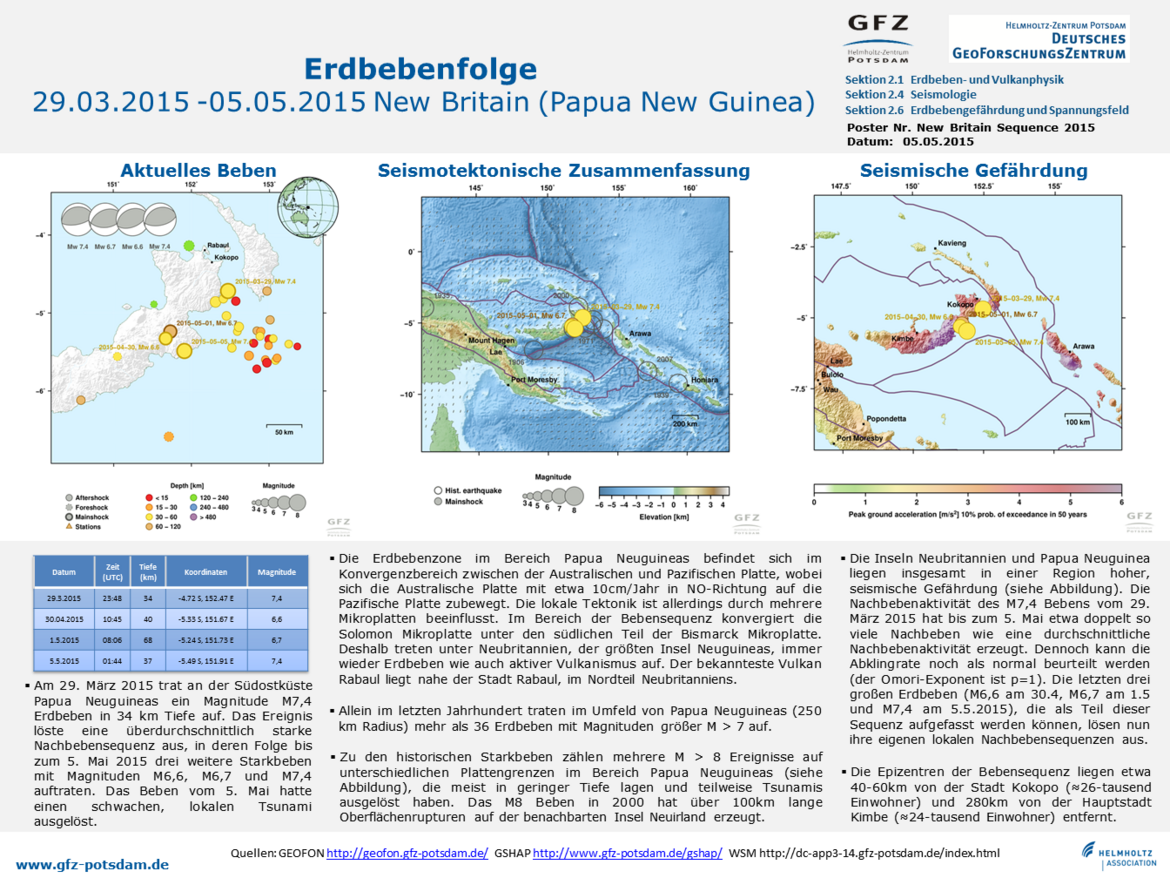 Earthquakesequence 29 March 2015 - 05 May 2015 New Britain (Papua New Guinea)