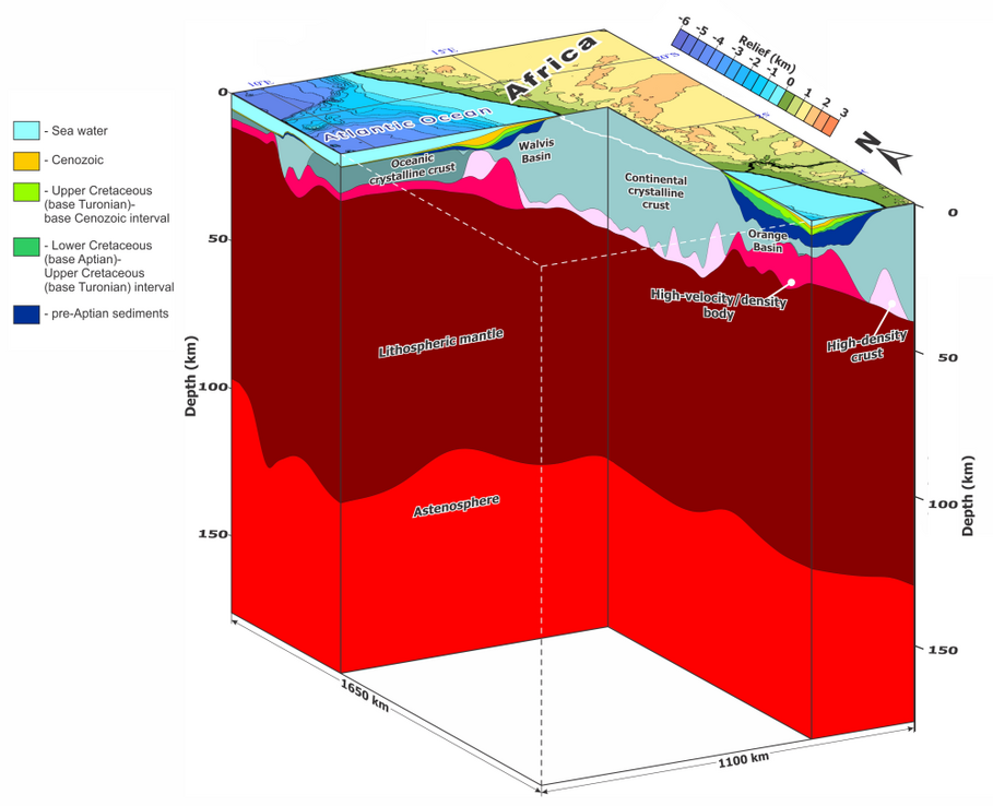 Hirsch, K.K., Scheck-Wenderoth, M. Paton, D.A., Bauer, K. (2007): Crustal structure beneath the Orange Basin, South Africa. South African Journal of Geology 110, 249-260, doi:10.2113/gssajg.110.2-3.249