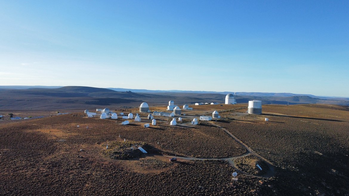 Das Bild zeigt den Campus des South African Astronomical Observatory circa 350 km nordöstlich von Kapstadt. Hier, bei Sutherland, betreiben wir seit 1998 mit unseren südafrikanischen Partnern das Geodynamische Observatorium SAGOS. Es umfasst u. a. Instrumente zur Messung von Bodenfeuchte und Grundwasserspiegel, von Pulsen des Erdmagnetfeldes und eine Referenzstation für geodätische Satellitendaten. Sehr besonders ist unser Supraleitgravimeter. Es ermöglicht eine äußerst präzise, langzeitstabile und kontinuierliche Aufzeichnung zeitlicher Variationen des Erdschwerefelds, die uns Aufschluss über Massenumverteilungen im gesamten System Erde liefern. Mit diesen langzeitlichen Schweremessungen können wir kleinste geodynamische Signale aufdecken, beispielsweise Ozeangezeiten 3. Grades mit Amplituden im Bereich von nGal (10-11 m/s²). Sie sind Teil des komplexen Gezeitenmusters, das durch den Einfluss der Schwerkraft des Mondes auf die Erde entsteht. Für die hochsensiblen Messungen braucht es extrem stabile Umgebungsbedingungen. Fernab menschlichen Einflusses liegt das Observatorium auf 1755 m Höhe in einem Dark Sky Reservat in der Karoo-Halbwüste. Inmitten des großen Dolorit-Plateaus gibt