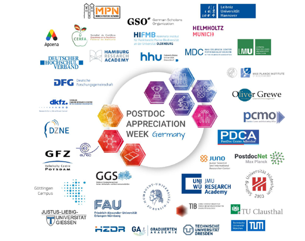 Die Postdoc Appreciation Week wird in Großbritannien und den USA schon seit 13 Jahren gefeiert, um Postdoktorand:innen ins Rampenlicht zu rücken. Das Munich Postdoc Network und die Universität Hannover haben sich dieses Jahr zusammengeschlossen, um die Postdoc Appreciation Week auch in Deutschland zu etablieren. Zugrunde liegt die feste Überzeugung, dass Postdocs in Deutschland angesichts ihrer Schlüsselrolle im deutschen Wissenschaftssystem - und ihrer schwierigen Arbeitsbedingungen/Karriereaussichten - ebenfalls mehr Aufmerksamkeit, Sichtbarkeit und Unterstützung verdienen.