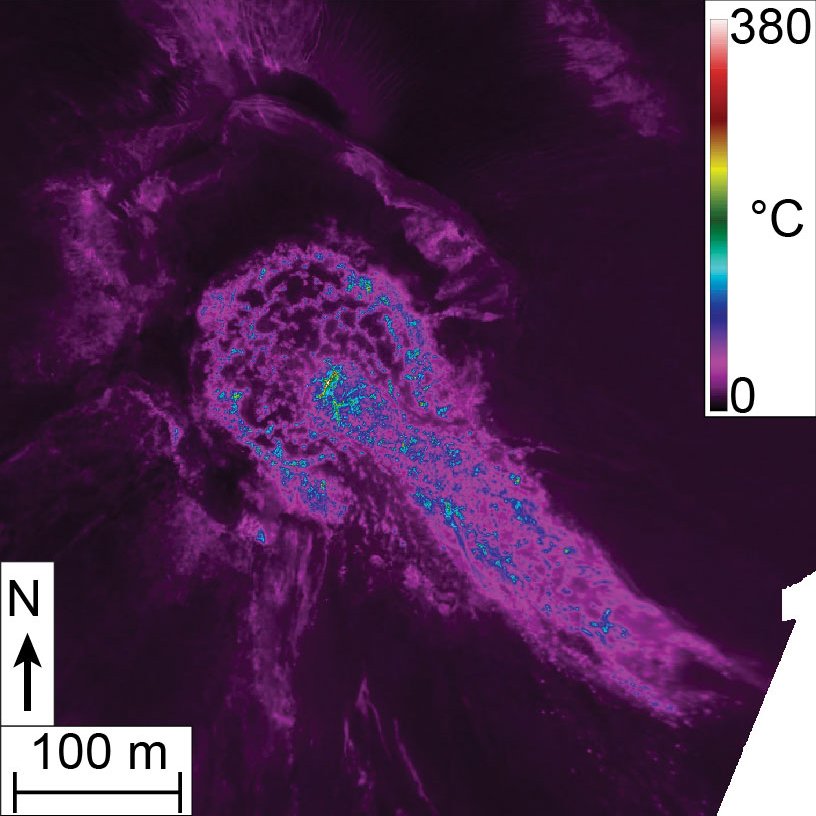 „Wir haben eine Drohne mit unterschiedlichen Kameras bestückt“, sagt Edgar Zorn vom GFZ, der Erstautor der Studie. „Die Drohne haben wir dann in verschiedenen Zeitabständen über den Krater geflogen und dabei die Bewegungen eines Lavastroms und eines Lavadoms mittels einer Art Stereophotographie in bisher noch nie erreichter Genauigkeit vermessen.“ Durch den Vergleich der Drohnendaten konnten daraus die Fließgeschwindigkeit, die Bewegungsmuster und die Oberflächentemperatur des Vulkans erfasst werden. Diese Parameter sind für eine Gefahrenvorhersage an explosiven Vulkanen wichtig. Außerdem ist es den Forschenden gelungen, die Fließeigenschaften der Lava aus diesen Daten abzuleiten.