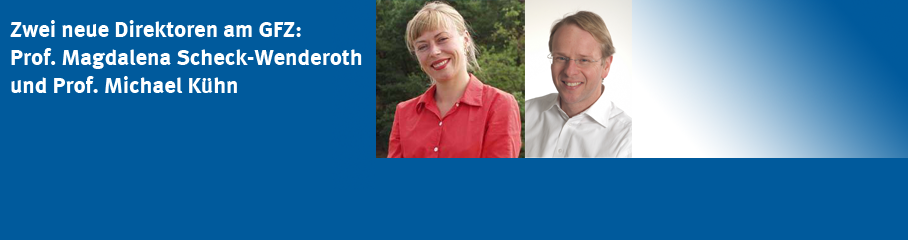 01.12.2014|Potsdam: Als neue Direktorin des GFZ-Departments „Chemie der Erde“ nimmt Prof. Dr. Magdalena Scheck-Wenderoth heute die Arbeit auf. Sie folgt Prof. Dr. Jörg Erzinger, der diese Funktion lange und sehr erfolgreich wahrgenommen hat. Ebenfalls mit dem 01.12.2014 wurde Prof. Dr. Michael Kühn zum Direktor der "Technologie-Transferzentren, Wissenschaftliche Infrastruktur und Plattformen" ernannt, die er zusammen mit Dr. Jörn Lauterjung leitet.