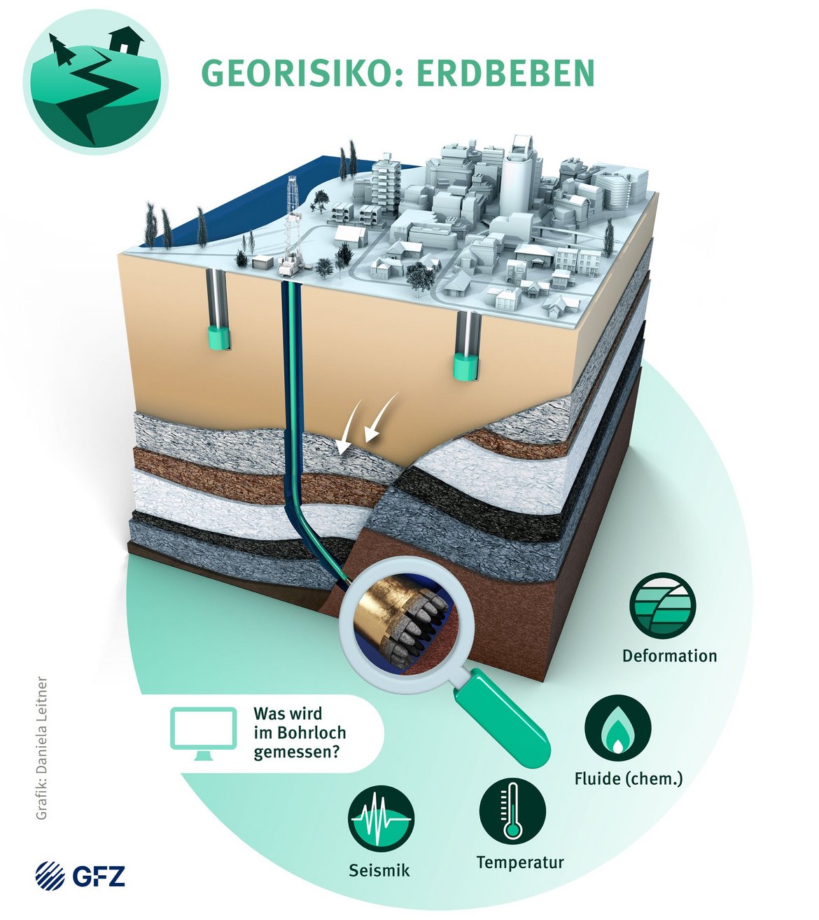 Auch bei der Nutzung von Bohrungen müssen Risiken minimiert werden. Bei der Erdöl- oder Heißwasserförderung oder auch beim Einpressen von Wasser oder Gas ändern sich die unterirdischen Druckverhältnisse in den Rissen und im Porenraum des umgebenden Gesteins. Das kann zur Rissaufweitung oder sogar zum Bruch im Gestein führen, was sich als Mikroseismizität oder Erdbeben zeigt. Glücklicherweise kann man heute mit besonders sensitiven Seismometern bereits kleinste Vorläufer, Mikrobeben genannt, detektieren und die Injektion drosseln oder stoppen, bevor sich größere Beben ereignen. Langsamer Druckausgleich führt dann zum Abbau der Spannungen ohne an der Oberfläche spürbare Beben.