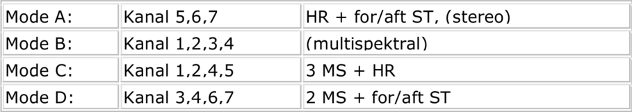 Im Rahmen der russischen PRIRODA/MIR Mission wurden MOMS-2P Daten in vier verschiedenen Arbeitsmodifikationen aufgezeichnet: