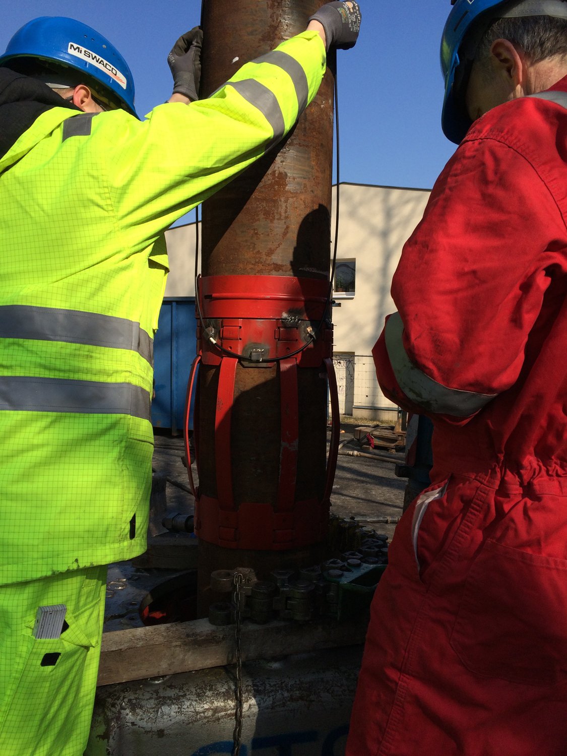 09.3. Einbau der 11 3/4" Verrohrung (bis 212 m) und des faseroptischen Temperatur-Messkabels