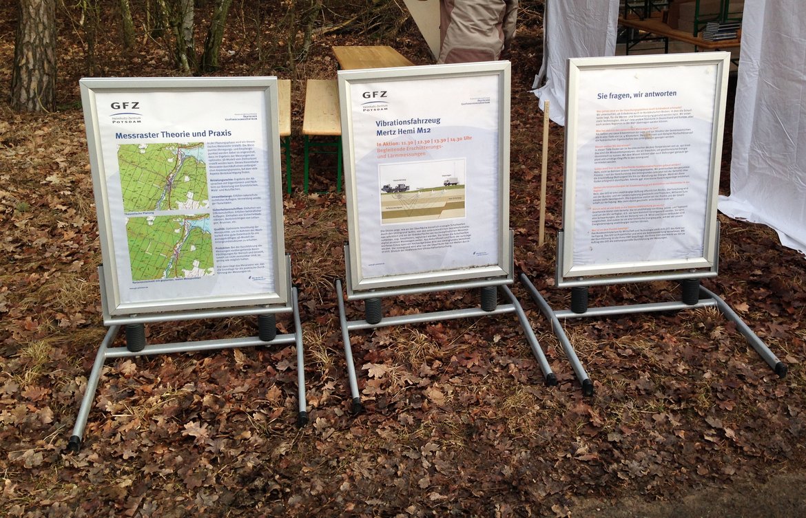 Im Rahmen einer öffentlichen Informationsveranstaltung wurden die Vibrationsfahrzeuge in Aktion vorgestellt. (© GFZ)
