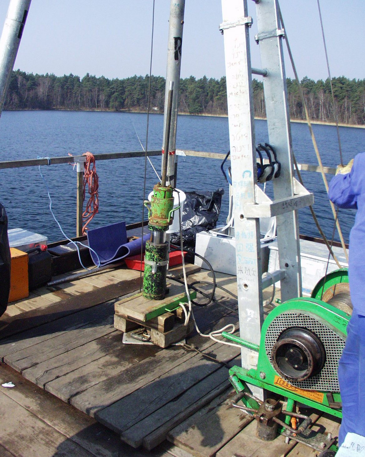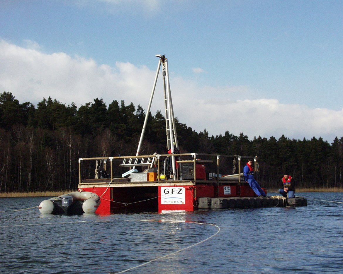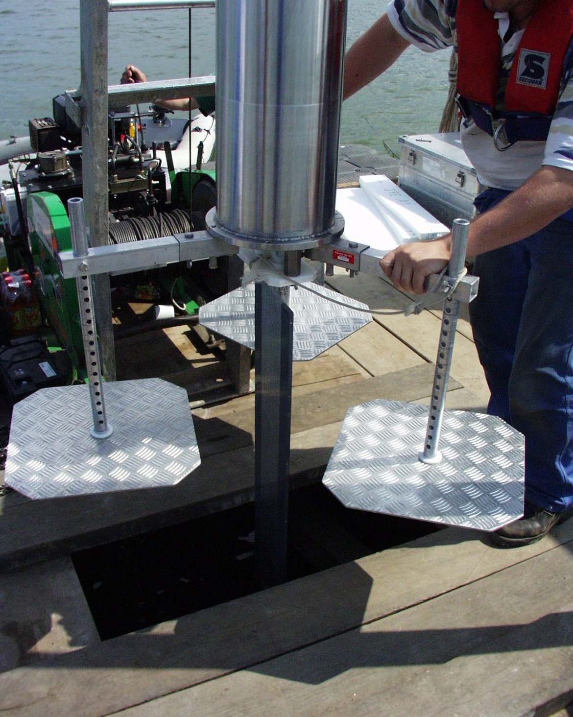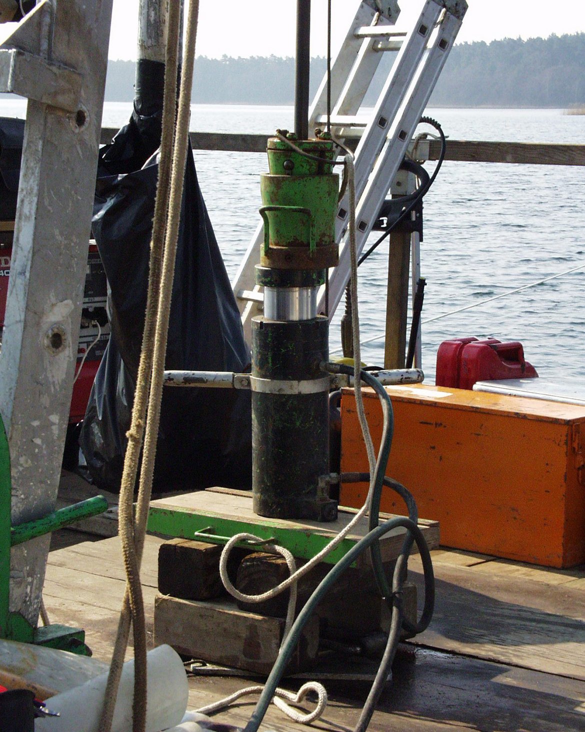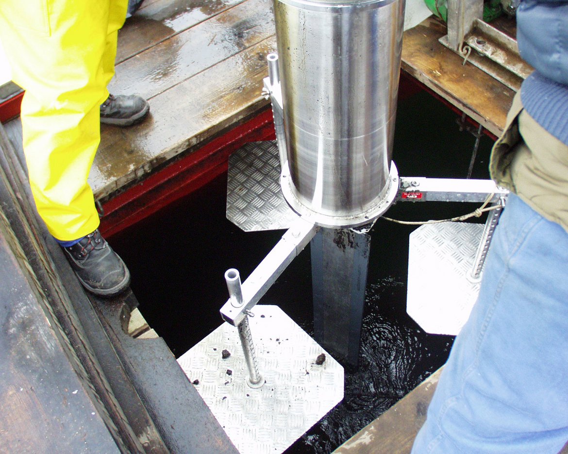 - dient zur Gewinnung langer ungestörter Sedimentsequenzen (über 20.0 m) bzw. härteren Sedimenten und bei einer maximalen Wassertiefe von bis zu 50.0 m von einer schwimmenden Stahlplattform mit Elektrowindenantrieb