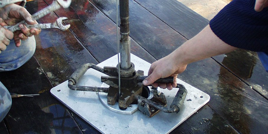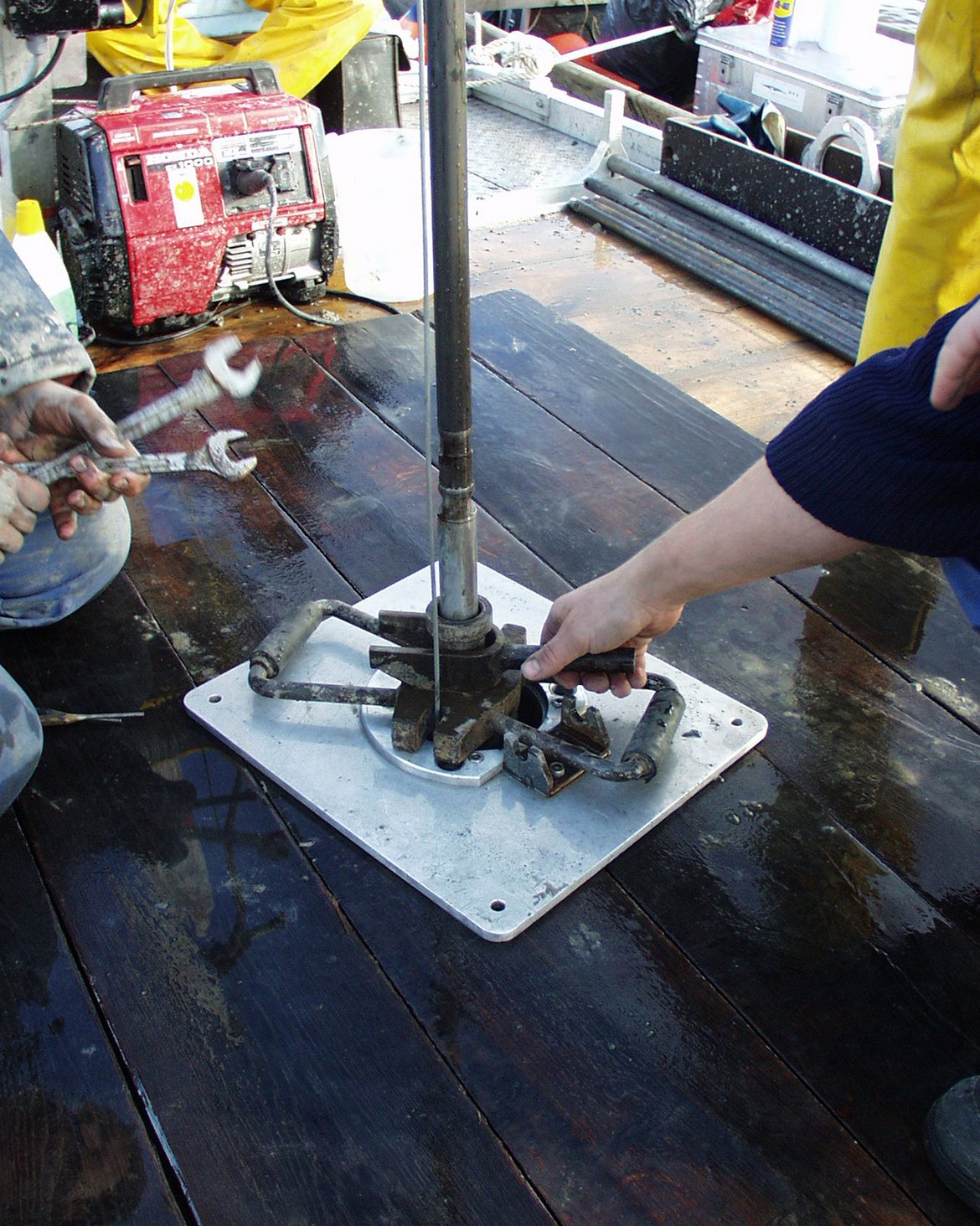 - Durch die doppelte Seilführung des Systems an der Plattform und am Seeboden wird die Qualität der gewonnenen Sedimentkerne erhöht