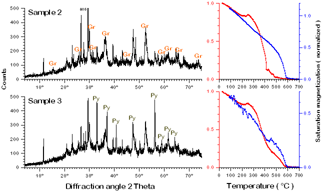 Die Dominanz von Greigit als Magnetisierungsträger in den erbohrten Sedimenten konnte, neben standardisierten mineralmagnetischen Messungen, vor allem durch röntgendiffraktometrische und thermomagnetische Analysen anhand von magnetischen Extrakten eindeutig nachgewiesen werden.