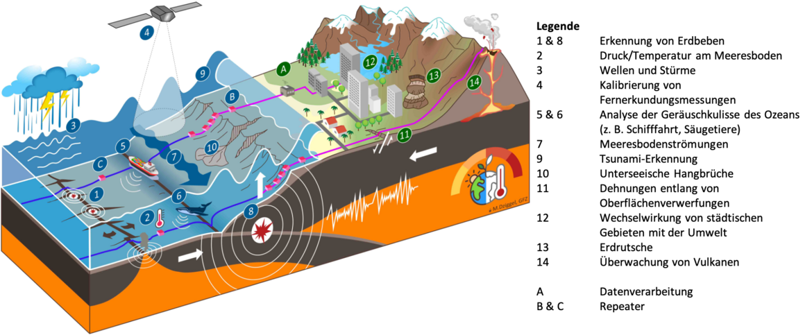 SAFAtor zielt darauf ab, die Beobachtungslücke im Ozean, sowohl auf den Kontinentalsockeln als auch in der Tiefsee zu schließen, indem 1) neue Sensormodule entwickelt und installiert werden, die sich leicht in unterseeische Telekommunikationskabel integrieren lassen, 2) die Glasfaser in vorhandenen Kabeln als Sensor verwendet wird und 3) eine Serviceinfrastruktur entwickelt wird, um diese neuen Beobachtungsdaten zu archivieren, zu verarbeiten und zu verbreiten. Eine wichtige Neuerung dieser neuen Generation von Beobachtungssystemen besteht darin, dass zur Beobachtung der festen Erde und der Ozeane vorhandene Telekommunikationssysteme anstelle von dedizierten Unterwasser-Glasfaserkabeln genutzt werden. Diese neuen Technologien haben das Potenzial, die Beobachtung der Ozeane grundlegend zu verändern und die Entwicklung von Modellen zur Analyse und Vorhersage des Klimawandels und der Variabilität von Meeresströmungen zu revolutionieren. Diese Beobachtungen könnten auch helfen, potenzielle Vorläuferphasen großer Subduktionserdbeben aufzuspüren, Erdrutsche an Küstenhängen erkennen und weitgehend unbekannte unterseeische vulkanische Aktivitäten überwachen. Durch in Echtzeit übertragen Beobachtung können Erdbeben- und Tsunami-Frühwarnung schneller und präziser ausgelöst werden. Angesichts der Neuheit und Einzigartigkeit dieser Beobachtungen werden auch andere, wissenschaflichte Fragestellung angegangen werden können (z. B. Erforschung des Meereslebens).