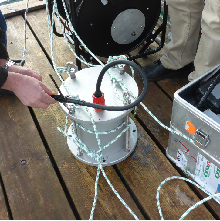 Zur Erkundung der Verbreitung von submarinem Permafrost arbeiten wir an system mit seismischen Sensor zum Absetzen auf dem Meeresgrund (Flachwasser).